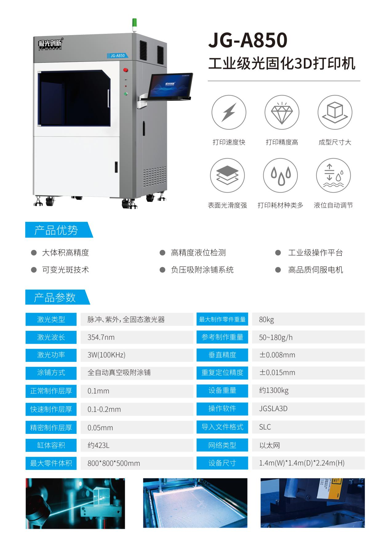 深圳市極光創(chuàng)新科技股份有限公司自2009年成立至今,一直保持初心,專注于3D打印技術(shù)的開發(fā)及綜合應(yīng)用。隨著增材制造技術(shù)的迅速發(fā)展,極光創(chuàng)新工業(yè)級產(chǎn)品也深入到各行業(yè)中,其中工業(yè)級SLA光固化3D打印機(jī)更是憑借其高精度、高速度、低成本的特點(diǎn),和600*600*410和800*800*500兩種超大打印空間,更大限度的提高了工業(yè)生產(chǎn)的生產(chǎn)率和靈活性,全方位滿足工業(yè)級大尺寸用戶的需求,受到了市場用戶的極度青睞。