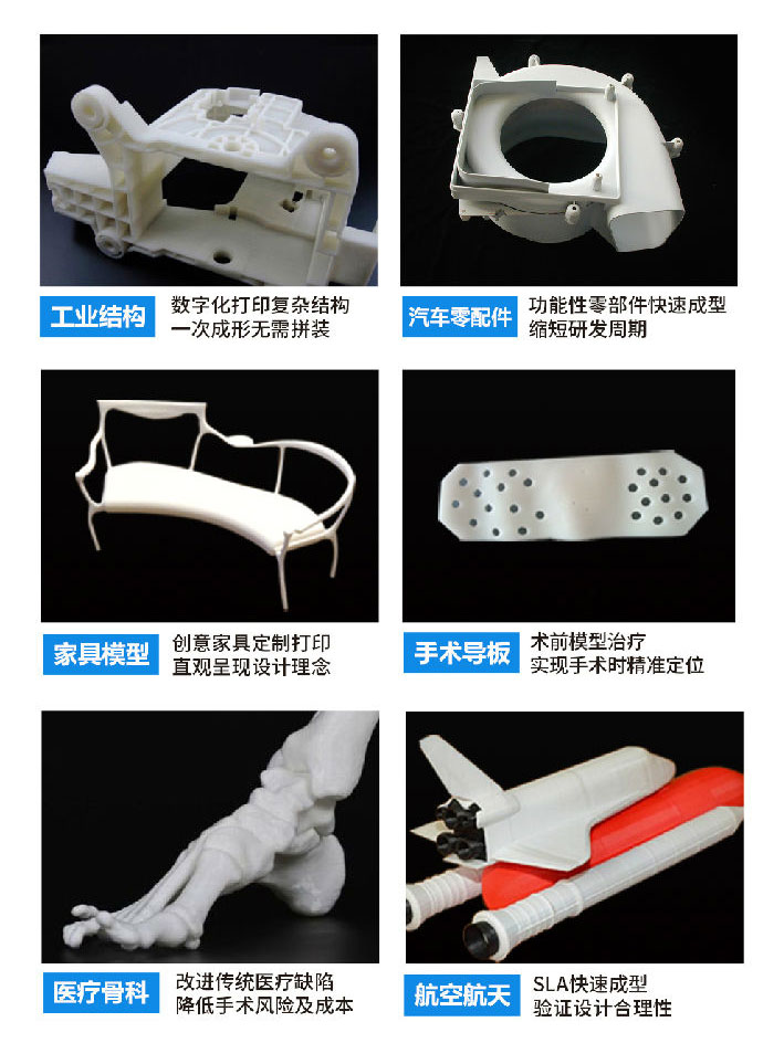 極光工業(yè)級SLA光固化3D打印機(jī)更是適配多種耗材,它支持透明、耐高溫、高強(qiáng)度等不同屬性的樹脂耗材,全方位滿足各行業(yè)客戶對材料特性的需求。廣泛用于醫(yī)療、文創(chuàng)、汽車、建筑、工業(yè)、航空航天、鞋類生產(chǎn)、教育、動漫等眾多領(lǐng)域。
