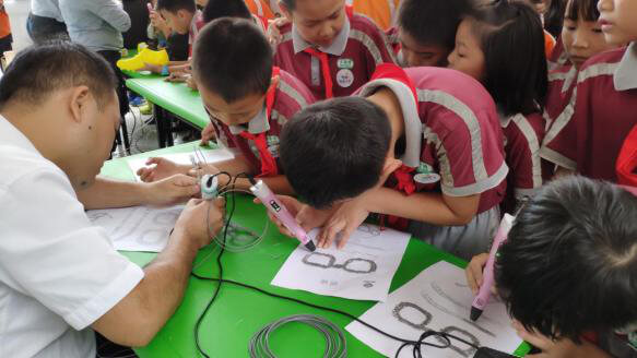 開幕式結(jié)束后,少先隊員們奔跑到各展位進行學習,極光爾沃展位人氣十足,少先隊員們對3D打印的模型很感興趣,不停的咨詢模型的打印時間和怎么打印出來,極光爾沃聽到這樣的問題非常開心,因為少先隊員們對3D打印十分感興趣,想從中了解更多3D打印知識,我們的李工組織分發(fā)耗材,為下午3D打印筆的體驗做好了準備。