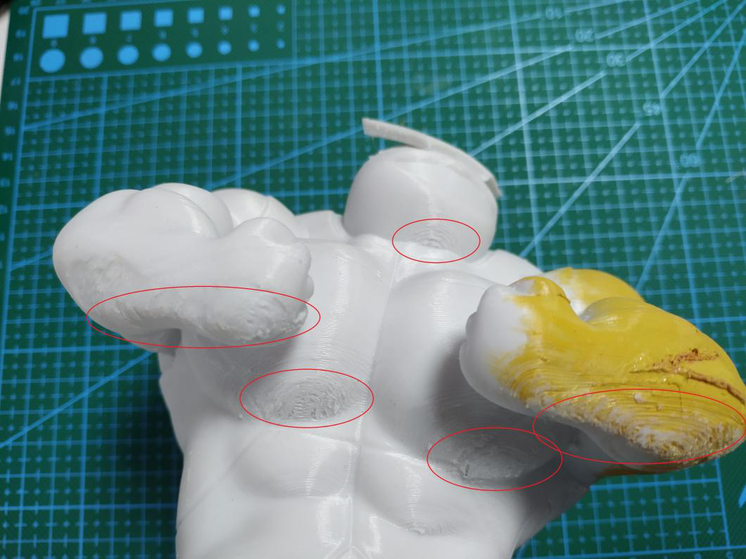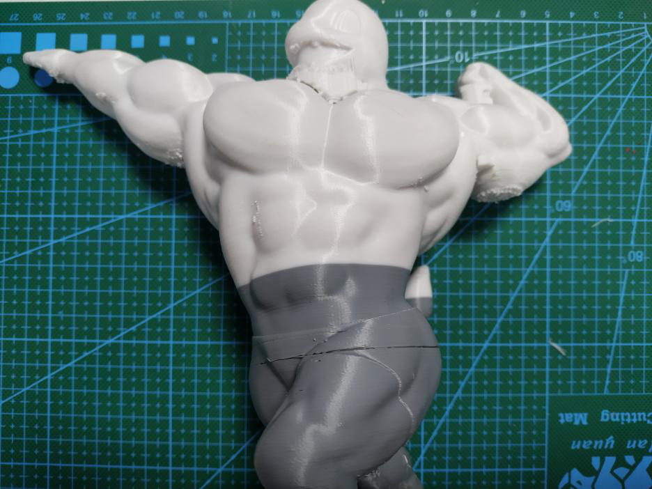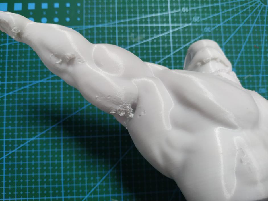 (如圖,豎直打印不僅能減少支撐面,而且還能提高整個(gè)手臂的精度效果,但是實(shí)際打印中,由于很纖細(xì)極容易失敗,只能犧牲表面效果來(lái)保證成功率。)