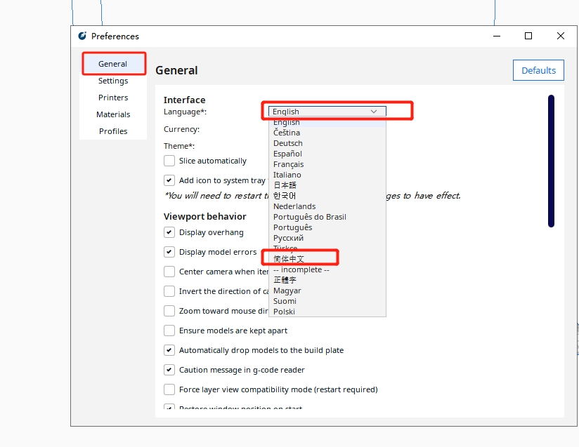 新手玩家拿到打印機(jī)后,第一步是除了安裝機(jī)器之外,還需要下載切片軟件,有小伙伴就會發(fā)現(xiàn),新下載的切片軟件頁面顯示的都是英文,問題來了,切片軟件的英文頁面該如何切換成中文?