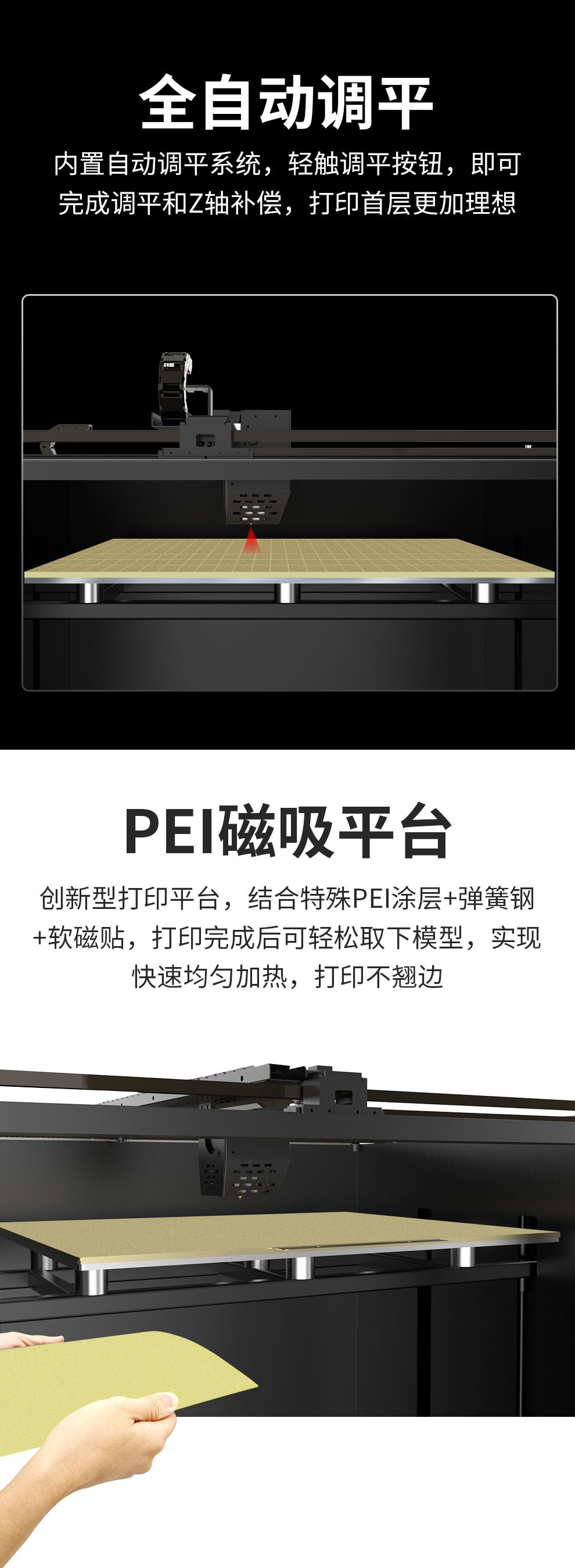 大尺寸部件成型能力強,配合高速耗材打印速度穩(wěn)定 300mm/s,采用先進的控制系統(tǒng)和精密的機械結構,能夠實現(xiàn)更準確的擠出、 定位和成型,配備整形機構并采用特殊的打印工藝,使打印件的表面更加光滑平整,減少層紋和瑕疵,提高產(chǎn)品的外觀質(zhì)量和使用性 能。