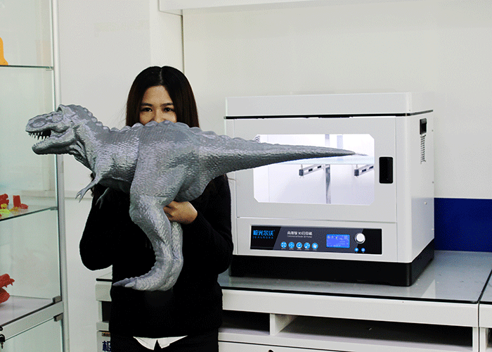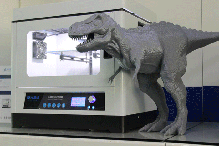 大恐龍是怎么3D打印出來的?極光爾沃的恐龍愛好者介紹:“其實也沒想象中那么難,只需要建好模型,用軟件轉(zhuǎn)一下代碼,就可以3D打印出來了,如果不會建模,也可以直接到一些3D云平臺下載,素材也相當豐富,差不多都可以找到自己想要的模型?!?/p>